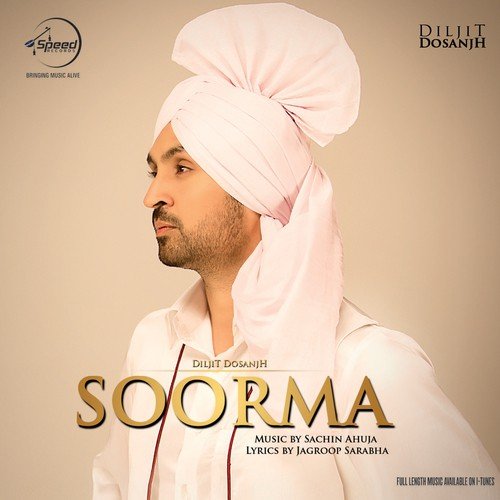 Soorma is sung by Diljit Dosanjh. Music composed by Sachin Ahuja. Lyrics written by Jagroop Sarabha. Released on 2013-01-09. Label: Speed Records India.
