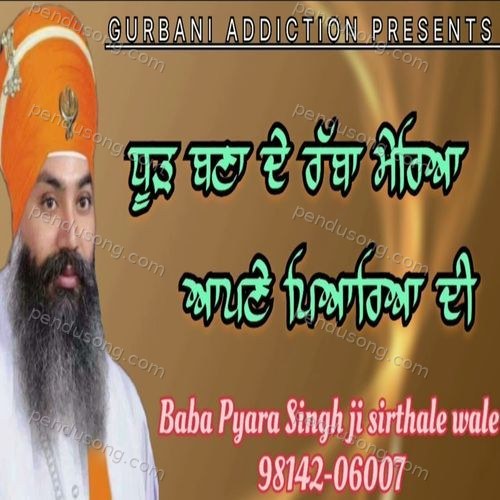 Dhoor Bna De Rabba Meriya is sung by Baba Pyara Singh Ji Sirthale Wale. Music composed by Baba Pyara Singh Ji Sirthale Wale. Lyrics written by Sikh History. Released on 2025-03-10. Label: Gurbani Addiction.