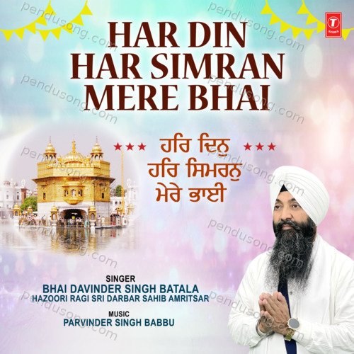 Har Din Har Simran Mere Bhai is sung by Bhai Davinder Singh Batala Hazoori Ragi Sri Darbar Sahib Amritsar. Music composed by Parvinder Singh Babbu. Lyrics written by Traditional. Released on 2024-01-01. Label: T-Series.
