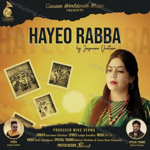 Hayeo Rabba is sung by Jasmeen Chotian. Music composed by DR..D. Lyrics written by Jasmeen Chotian. Released on 2020-10-20. Label: Canam Worldwide Music.