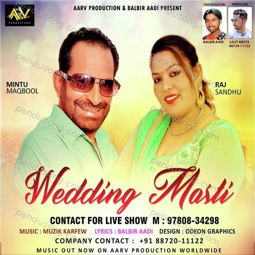 Wedding Masti is sung by Mintu Maqbool. Music composed by Muzik Karfew. Lyrics written by Balbir Aadi. Released on 2017-03-05. Label: Aarv Production.